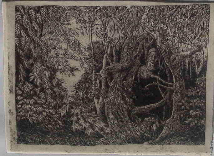 Stahlstich mit dem Titel Selbst im Dickicht von Bernd Rose
